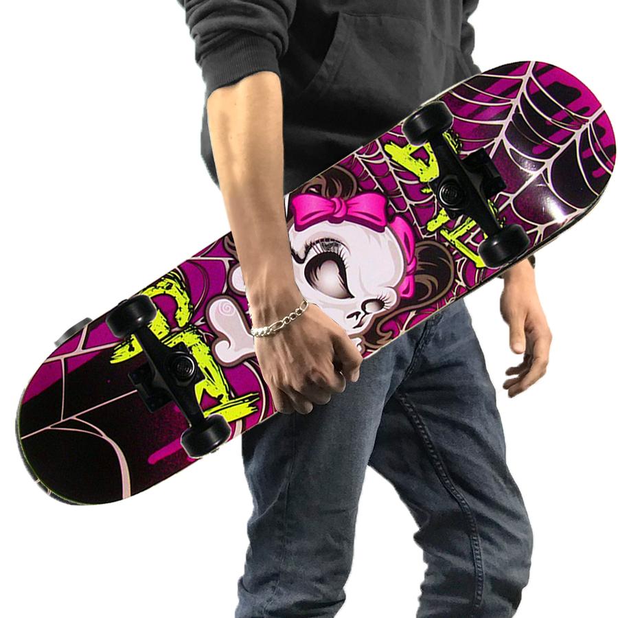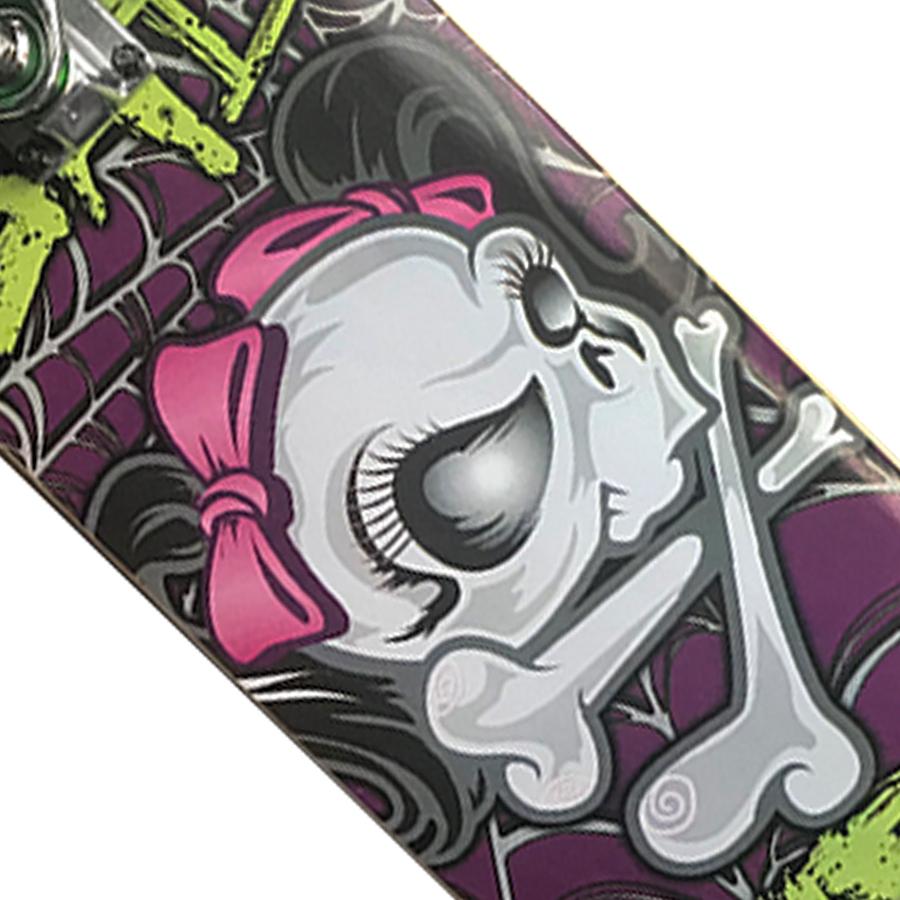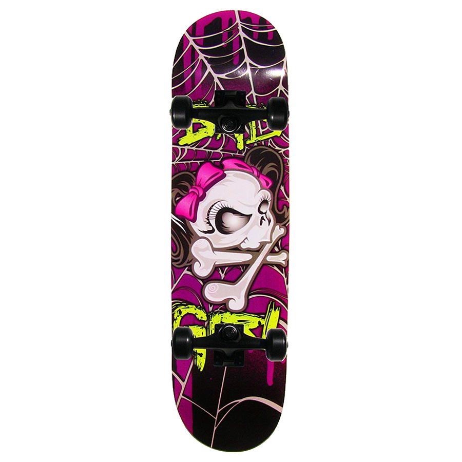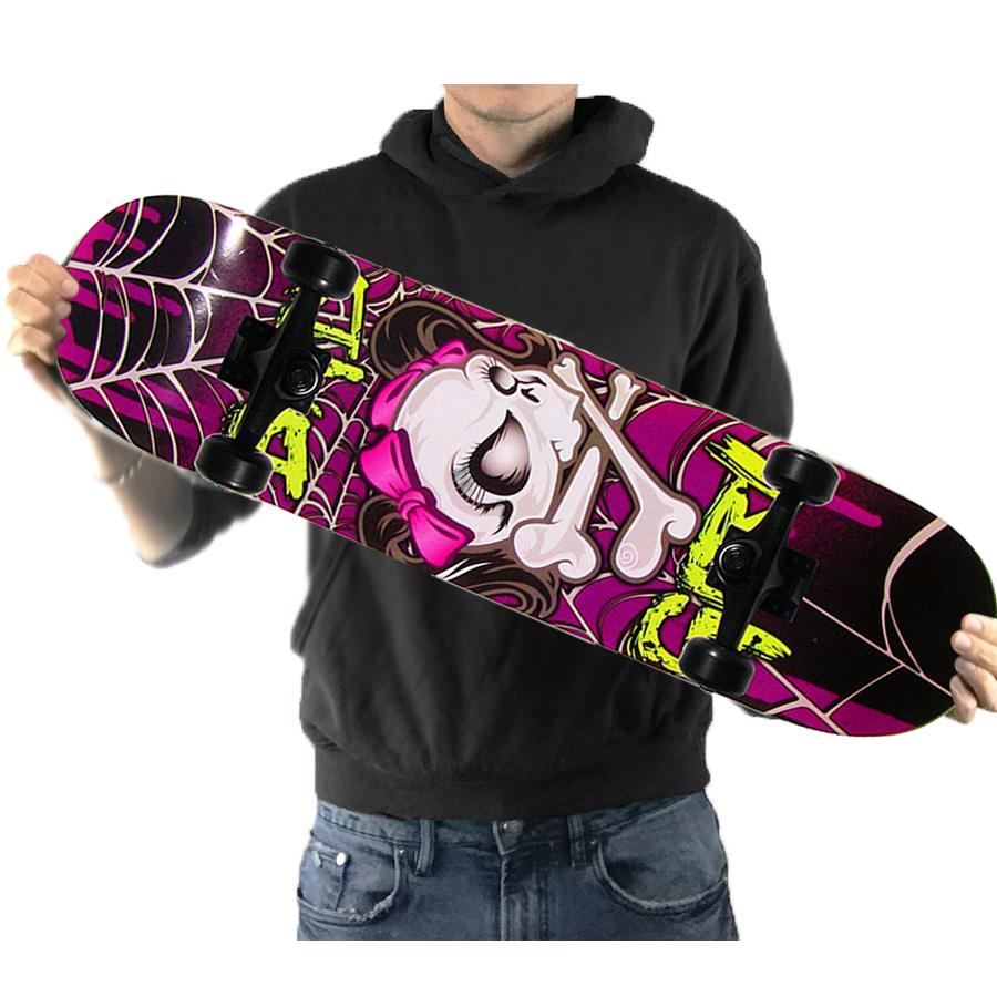 | Deck Length | 8″ x 31″ | Deck Bottom | Black, Pink, White and Yellow Skull & Bones (with bows & ponytails) Graphic |