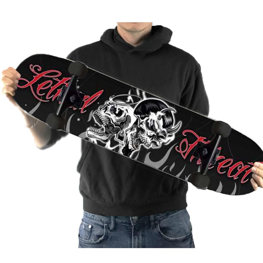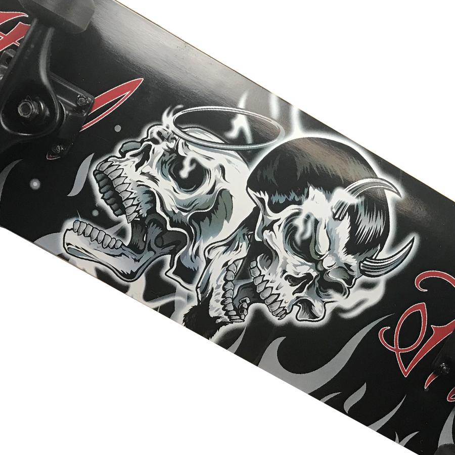 | Deck Length | 8″ x 31″ | Deck Bottom | Red, Black and Grey with Black & White Angel and Devil Skull Graphic |