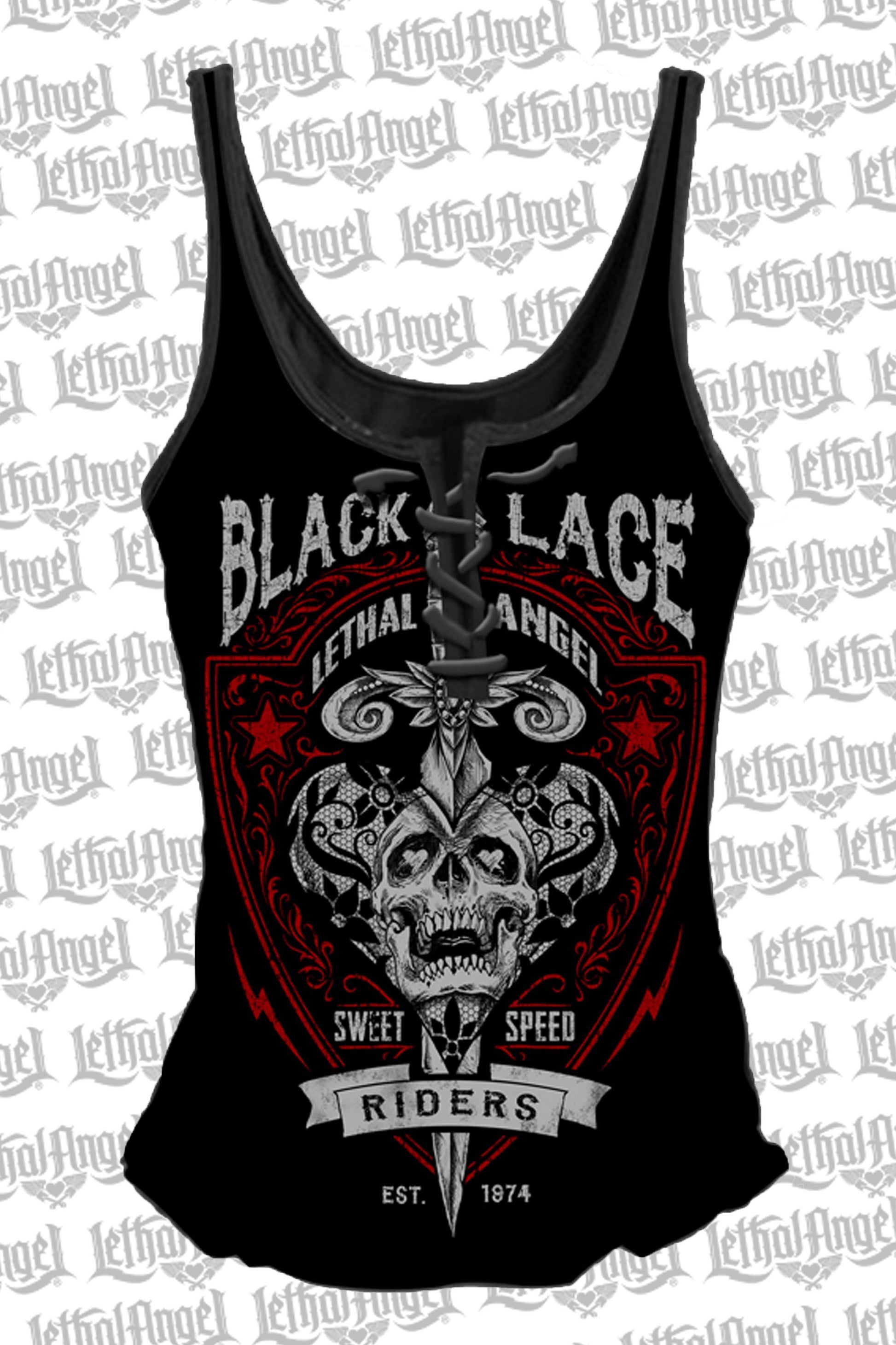 Lethal Angel Black Lace Riders Lace Up Tank Top
