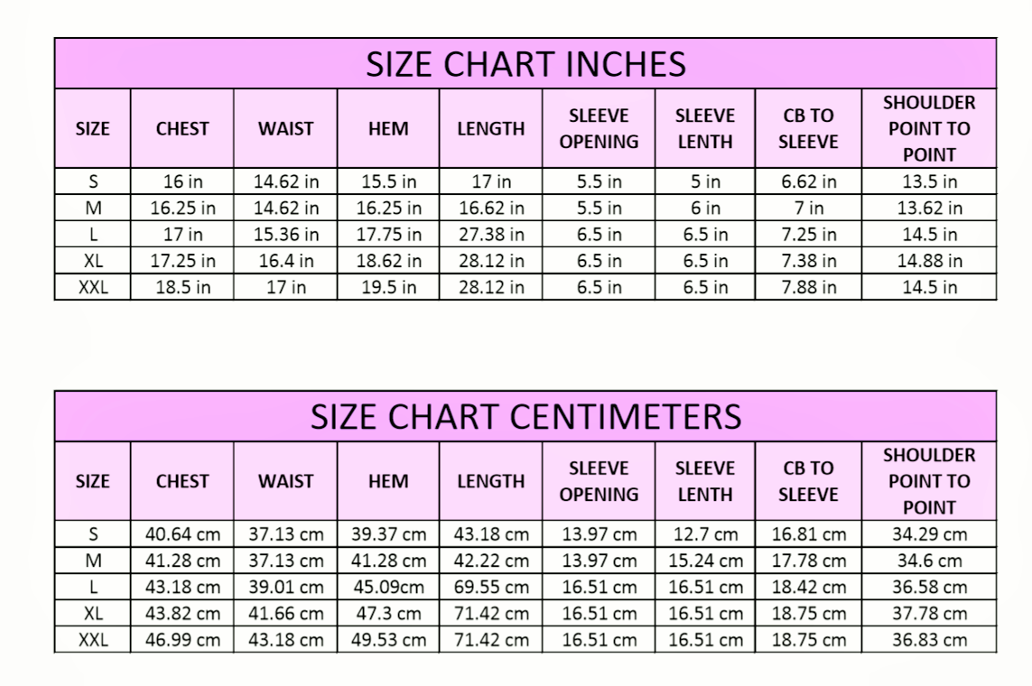 Model Measurements - Chest 34in, Waist 27in, Hips 38in
