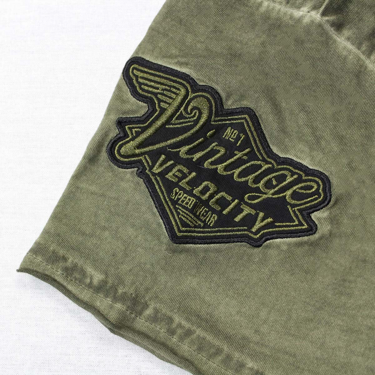 To add to the Vintage look , each shirt has hand distressed edges, distressed sleeve patch and machine enzyme wash for a softer hand feel